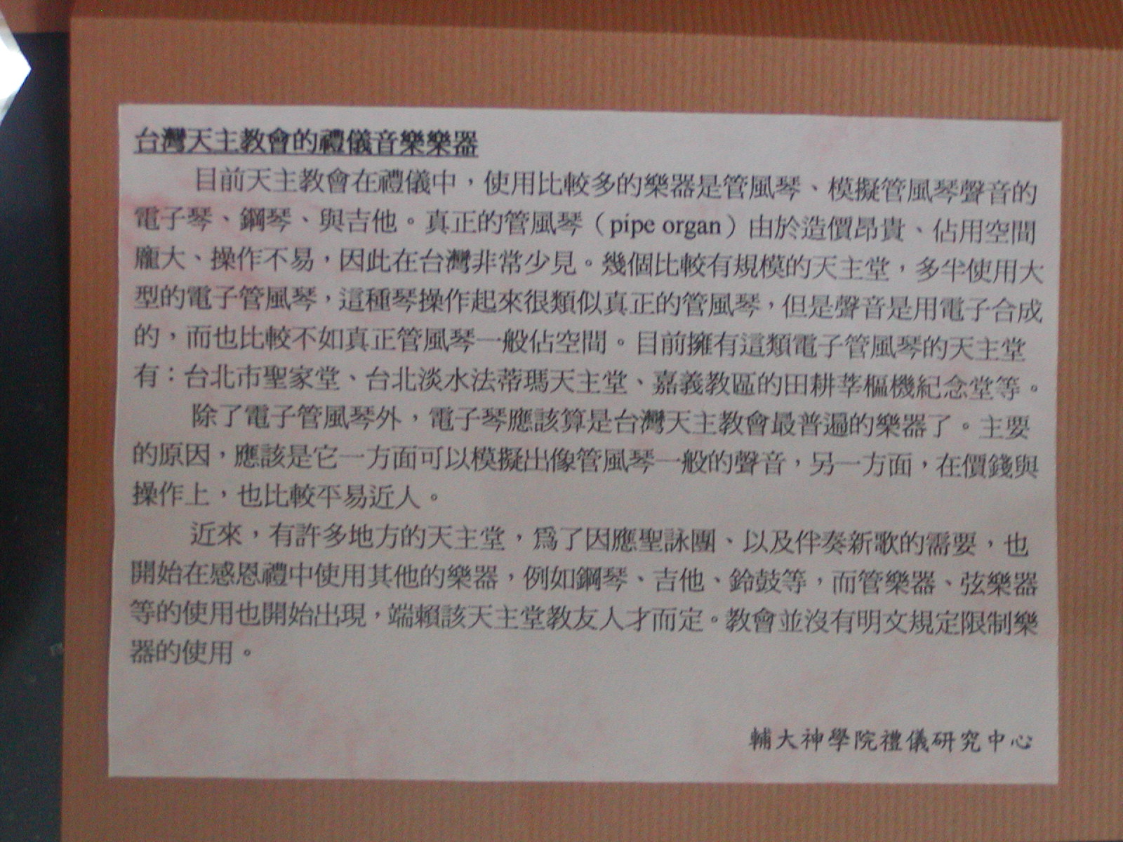 Center for Liturgy, Faculty of Theology, Fu Jen Catholic University.