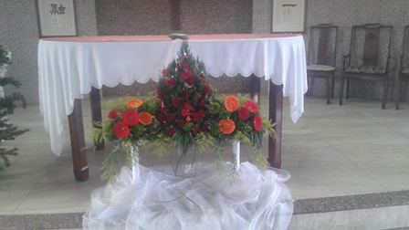 聖堂中的花藝,除了展現天主創造之美,更為禮讚上主。服務於彰化靜山靈修中心的吳翠燕姊妹,把全心全靈對上主的愛,表達在高超的插花藝術中,令人讚嘆。本中心特闢「靜山的花藝」專欄,分享其傑出的插花作品,以供參考。並歡迎所有愛花的兄弟姊妹,提供插花作品,互相切磋。